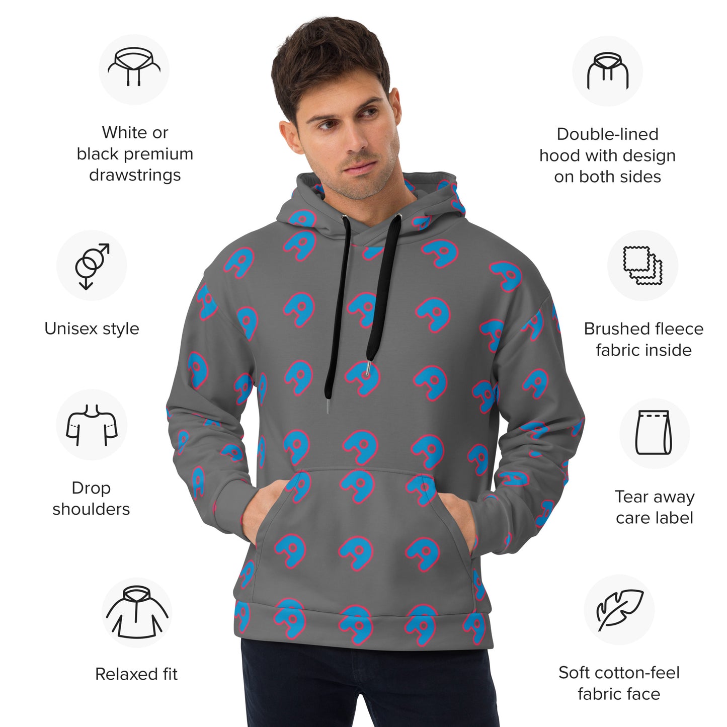 • Double-lined hood with design on both sides