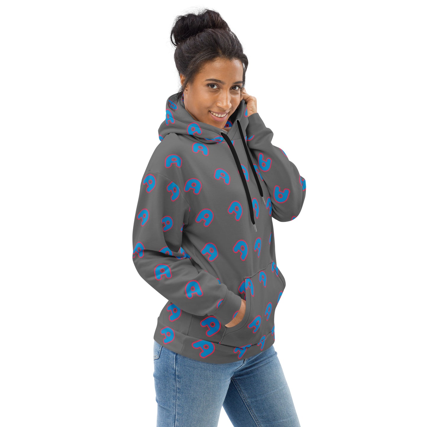 The Appreciators Gray AOP Blue A Recycled Poly Unisex Hoodie