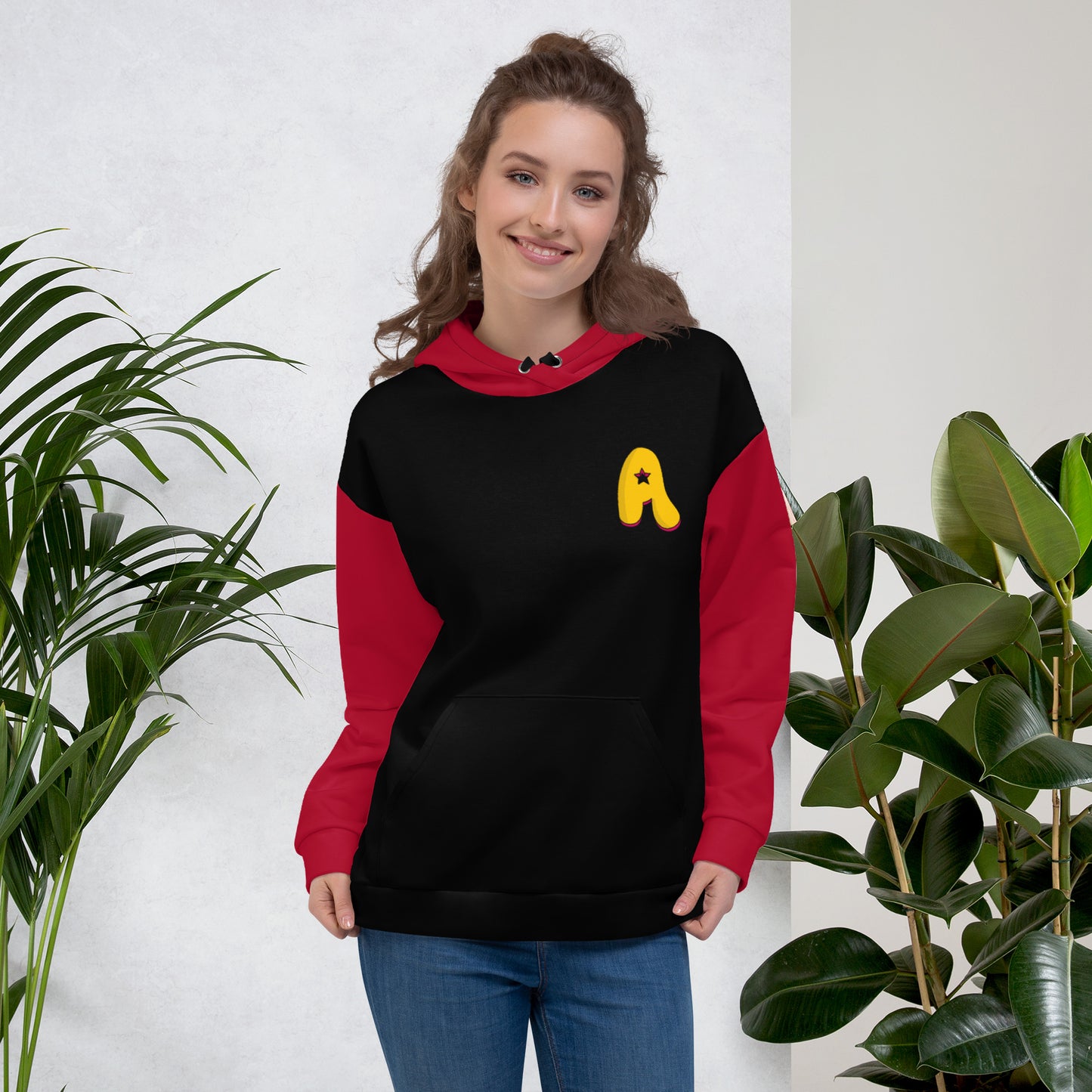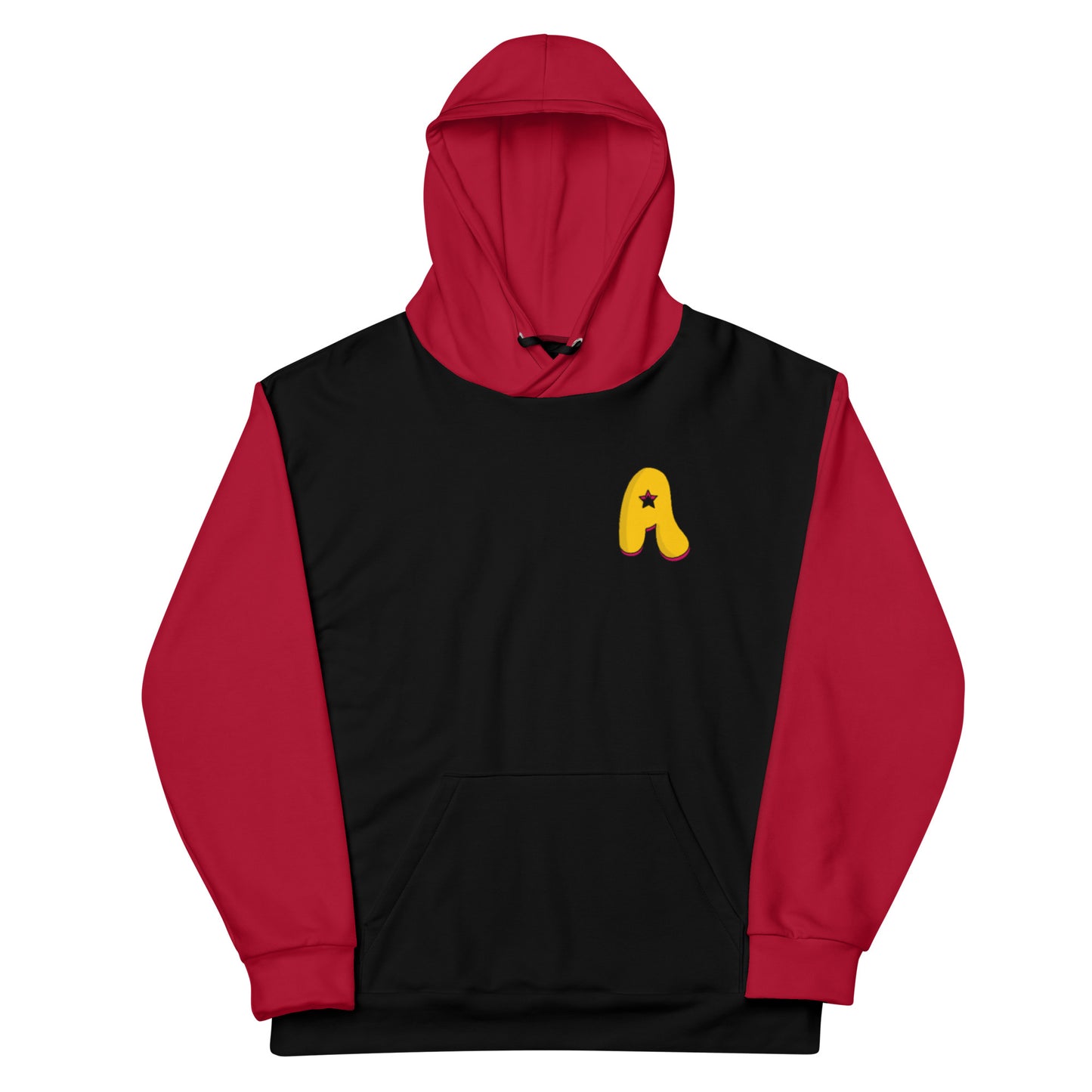 The Appreciators Red and Black AOP A Logo Recycled Poly Unisex Hoodie