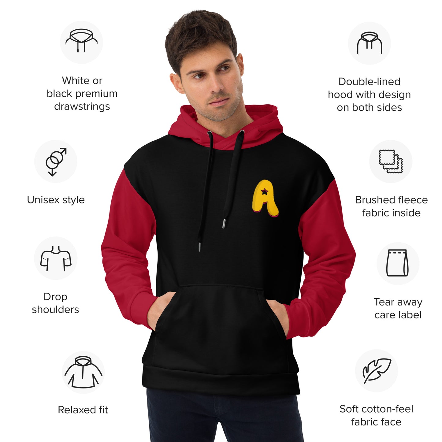 • Double-lined hood with design on both sides